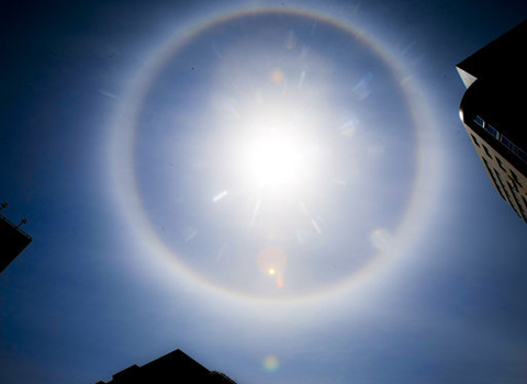 Hôm 26/6, người dân thành phố Trường Xuân, tỉnh Cát Lâm, phía đông bắc Trung Quốc đã được tận mắt ngắm nhìn vầng hào quang lạ xung quanh mặt trời.